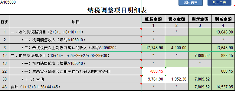 说明:a.第22行“(十)与未实现融资收益相关在当期确认的财务费用”是调整会计处理确认的“财务费用”;