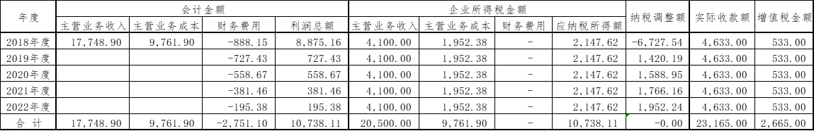 2018-2022年税会差异及纳税调整汇总如下表: